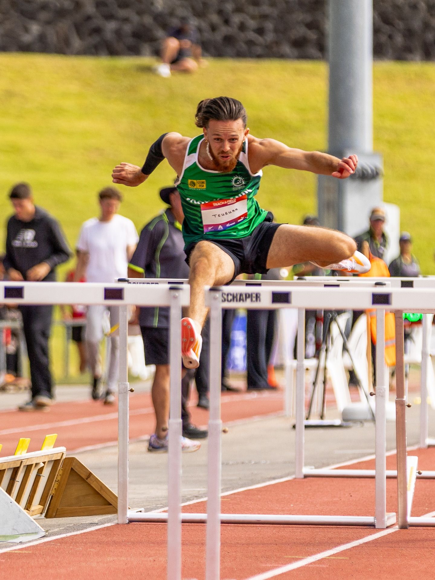 Cook Islands athlete Max Teuruaa produced one of the most remarkable efforts of the meet, equalling his national record in the pole vault before breaking the Cook Islands record in the 110 metres hurdles with a time of 15.57.