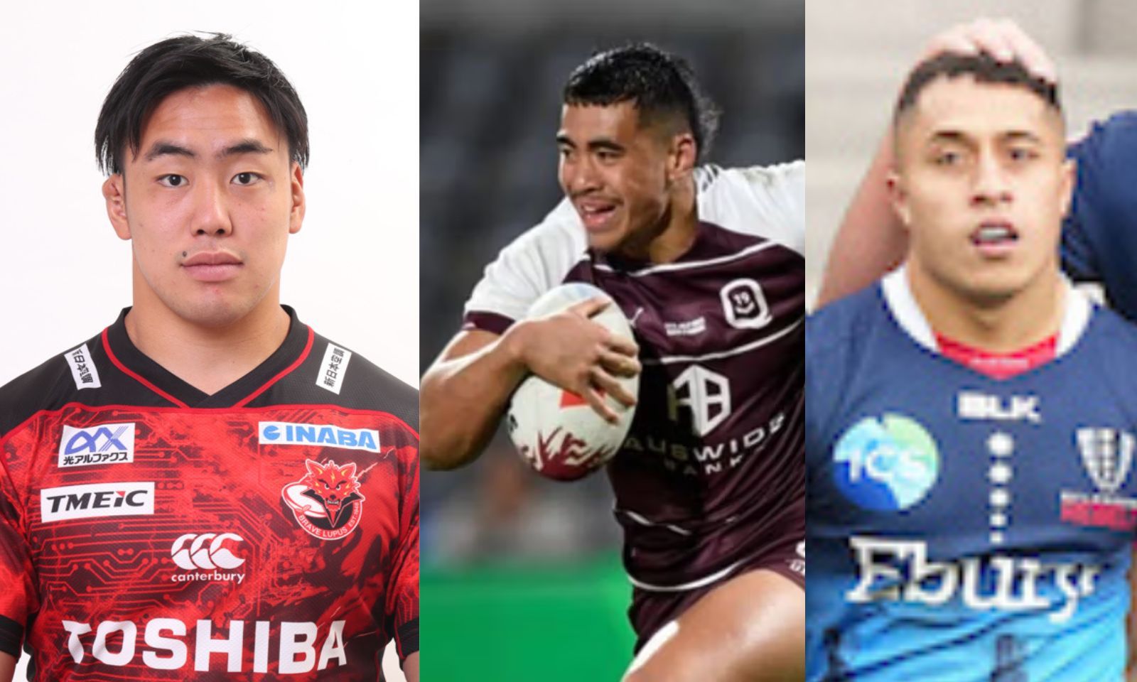 Japan hooker Mamoru Harada, left, joins Moana Pasifika, with young wingers Israel Leota from the Brisbane Broncos and Glen Vaihu, right, set to be the ones to watch. Photo/Japan Rugby League One/Queensland Rugby League/AAP-Photosport/AAP Image/Scott Barbour