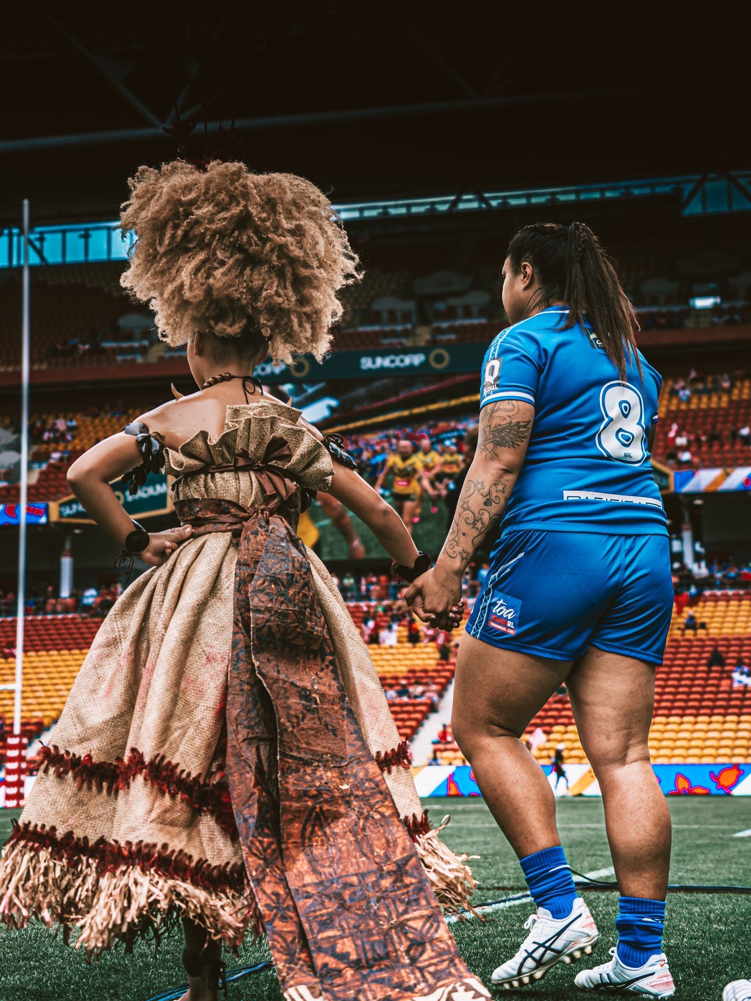 Fetu Sāmoa captain Netta Nuuausala walking out at Suncorp Stadium. Photo/Ella Carlsen