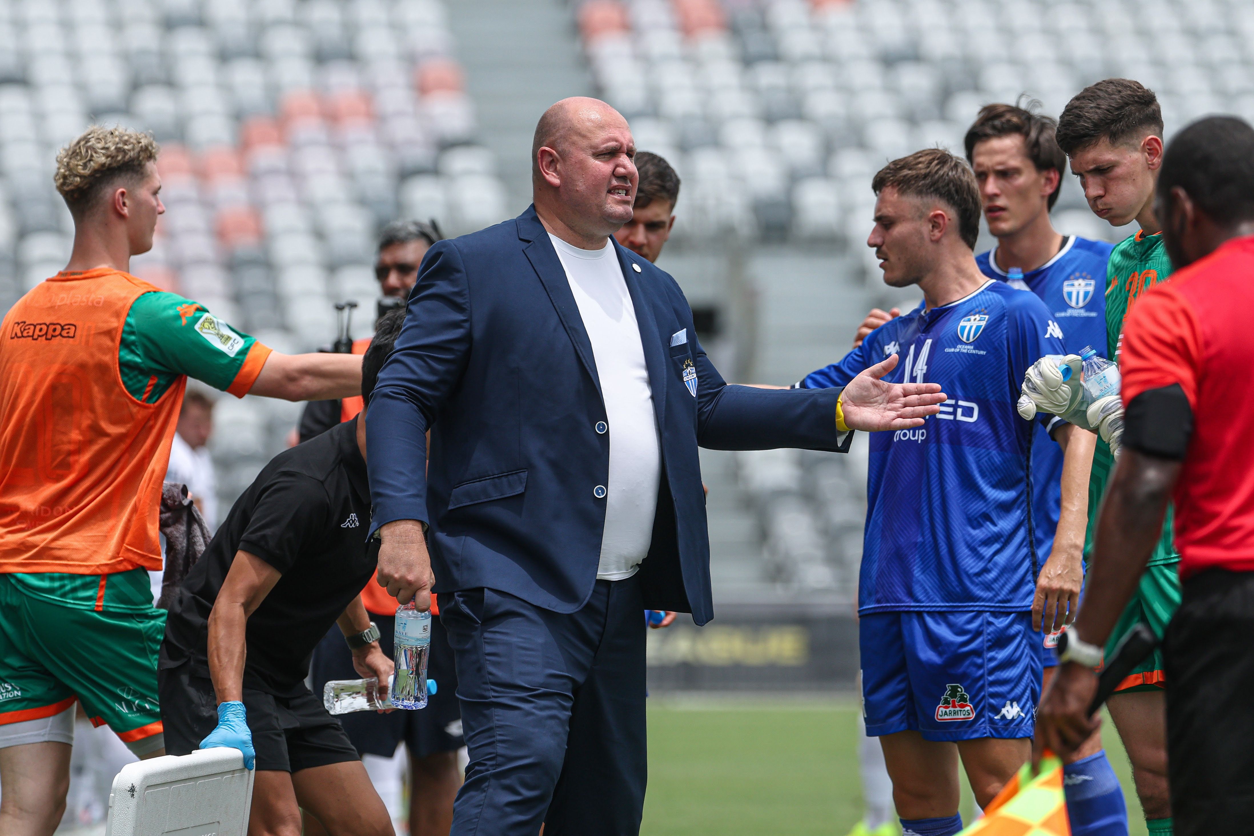 Bula FC coach Stephane Auvray watches on during training as his side look to find consistency in Round 3 of the OFC Pro League in Melbourne. Photo/OFC Media/Phototek